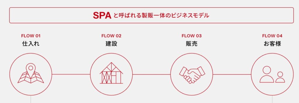 オープンハウスに建売が多い最大の理由は、土地仕入れから設計・施工・販売までをグループ内で完結させる 「製販一体モデル」にあります。